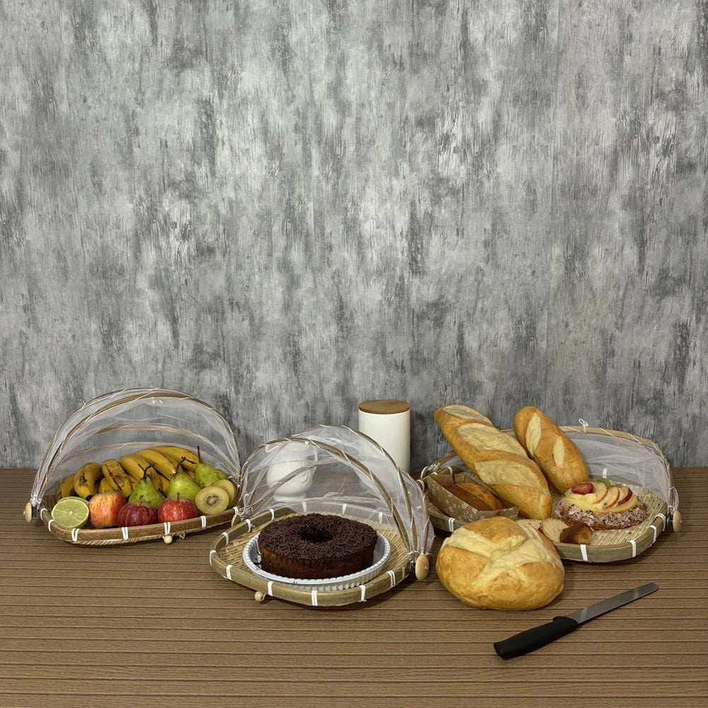 Com design funcional e sofisticado, a Cesta Protetora Premium cobre frutas, pães, pratos e refeições completas de uma só vez.