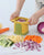Corte e corte rapidamente legumes e frutas, conveniente e fácil. Não há necessidade de tocar nas lâminas afiadas. Nunca machuque os dedos. Não são necessárias ferramentas adicionais ou mesmo uma tábua de corte!
