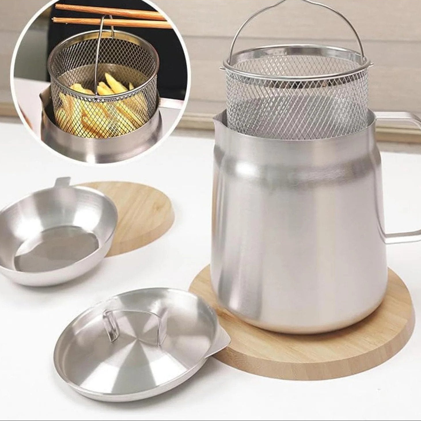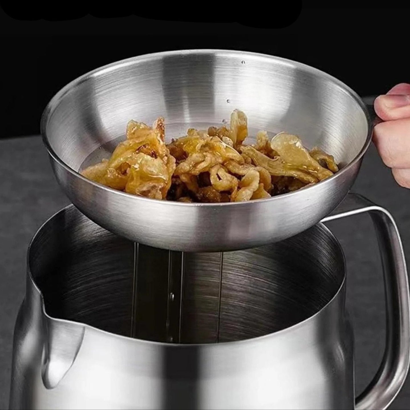 Com design funcional e resistente ao calor, ele separa os resíduos automaticamente através do filtro de inox, e mantém o óleo limpo e pronto para uso sempre que precisar. Esqueça potes de sorvete ou tigelas descobertas: aqui, é praticidade com estilo!