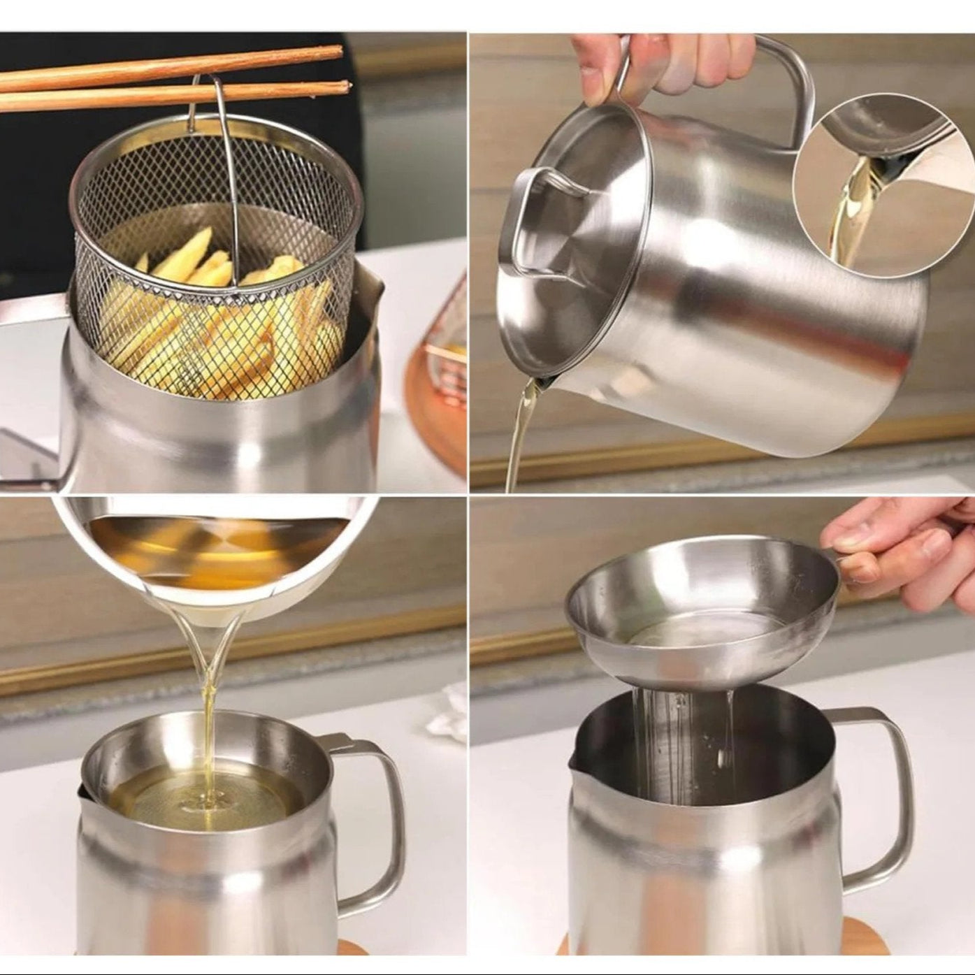 O Pote Reutilizador de Óleo é a solução perfeita para quem costuma guardar gordura ou óleo após o preparo de carnes, frituras ou temperos. Feito em inox, com tampa e filtro integrados, ele mantém tudo limpo, protegido e pronto para reutilização — sem bagunça e sem riscos!
