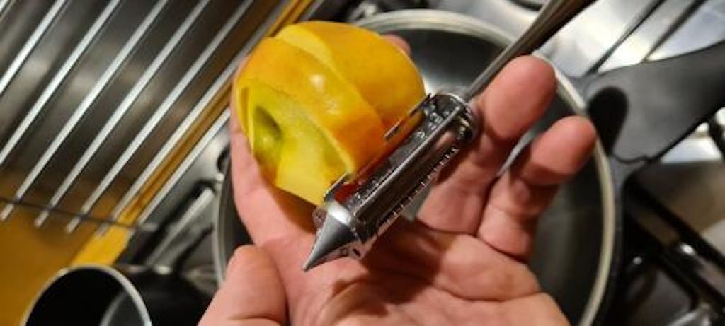 Estas lâminas duplas de aço inoxidável são ultra afiadas para uma descamação suave e sem esforço. Você pode facilmente mudar de descascar vegetais para cortar em juliana.